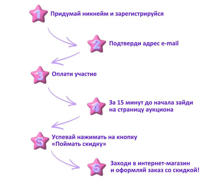 ⭐в случае, если вы не станете победителями аукциона, вы ничего не теряете — внесенная стоимость участия в аукционе автоматически зачтется при покупке товаров в магазине-инициаторе